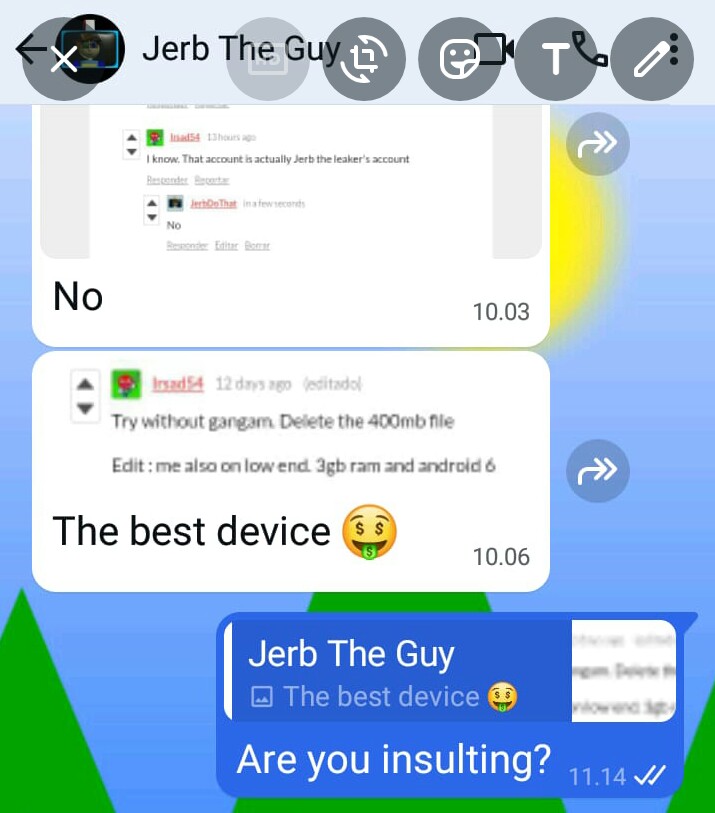 I ignore him now. First Because he's stole my videos. He upload it on his you tube. Second he always insulting me including my phone, and the third he never thank to me
